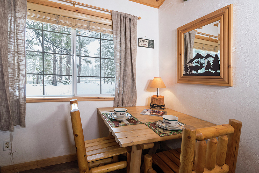 To all our fishing aficionados we introduce "The Angler Room." Featuring a fishing themed decor of its own, this individual room boasts a queen size sleigh bed beset by custom, knotty pine woodwork and warmed by your own river rock, gas fireplace. Other amenities include a kitchenette complete with microwave, refrigerator, coffeemaker, toaster and dishes, as well as satellite DIRECTV and DVD player. Room also comes with private bath and shower, free WIFI, and an alarm clock with USB port.